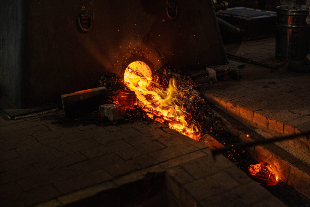 このタイミングで炉の側面から“鉄の川”のように流れ出す瞬間は、まさに神秘的。